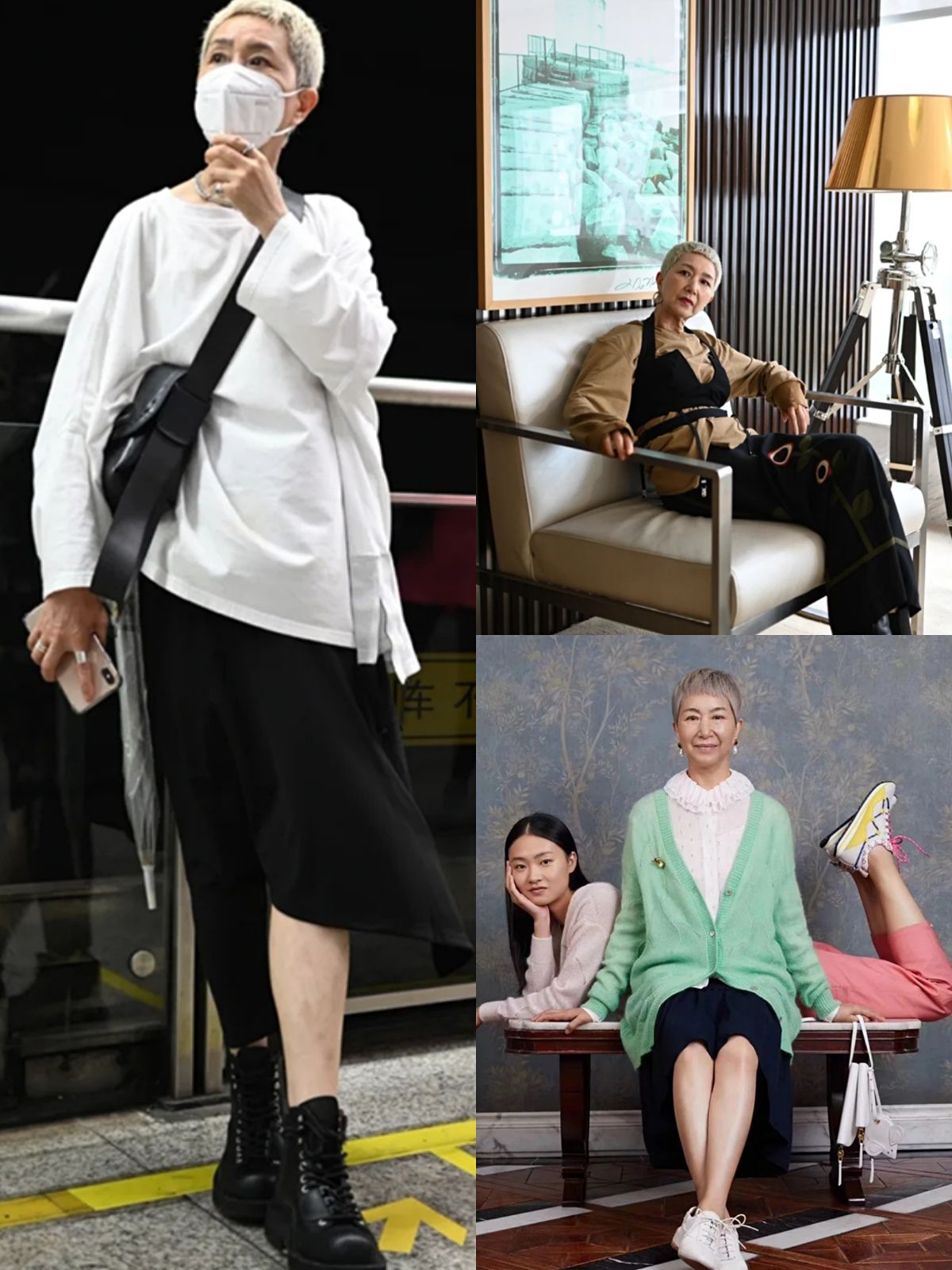 拿這身穿搭作為例子,黑色無袖連衣長裙疊穿黑色長褲,“all black”配色的洗練個性被詮釋到極致,白色小披肩隨意搭在肩上,更添一抹隨性自在,搭雙小白鞋,不老氣,不浮誇,一切都恰到好處。不少人或許覺得,60後就該有60後的樣子,但每個人都有自己的人生,能夠做決定的只有自己。在馬姐看來,這是她自己的人生,也是她自己需要去體驗的生活,無論穿什麼、怎麼穿,她都會選擇自己喜歡的風格。